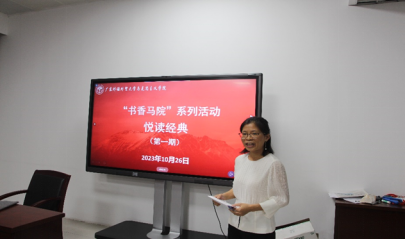 2023年10月26日晚上七点,马克思主义学院在大学城校区教学楼A509会议室召开“书香马院”系列活动——悦读经典(第一期)。会议由马克思主义学院研究生兼职班主任练建玲主持,学院院长毛国民、学院院长助理雷艳芝、研究生导师薛俊强、两位研究生兼职班主任周彦霞、邓晶晶、四位22级研究生主讲人以及学院23级全体研究生参与了读书会。