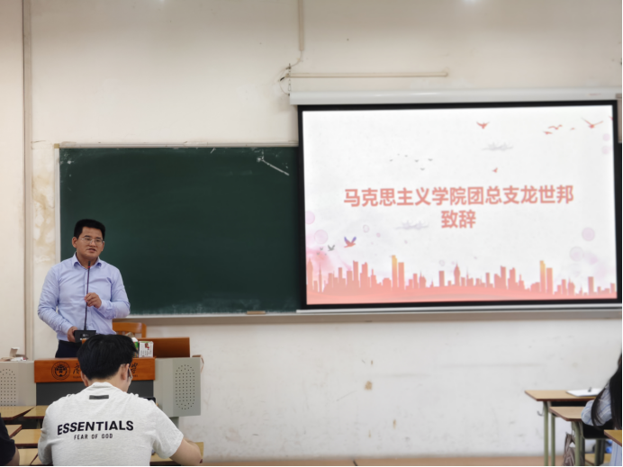 会议伊始,由马克思主义学院团总支龙世邦主任致辞,指出马克思主义学院研究生团总支、研究生会,对学院各项工作发挥了很大的作用,要进一步加强团组织建设,做到党团学一体推进。随后,围绕着未来的工作要求深入浅出地提出了以下五点:一是把专业同政治站位立场相结合,作为同学们中的先进群体,要提高政治觉悟。二是要用心工作,勤于思考。善于发挥主动性和创造性,提高自我。关键时刻不能掉链子,不能出纰漏。经过一年的锻炼,相信学生干部们的工作能力将会大大地提高。三是要增强服务意识。作为学生干部,要及时向学院、学校传达同学们的诉求,在方方面面发挥先锋模范作用。四是在工作中推进一体化建设,部门内外要注重沟通合作,共同谋划活动并执行推进,拒绝出现“踢皮球”现象。五是在工作推进当中落实好目标导向。