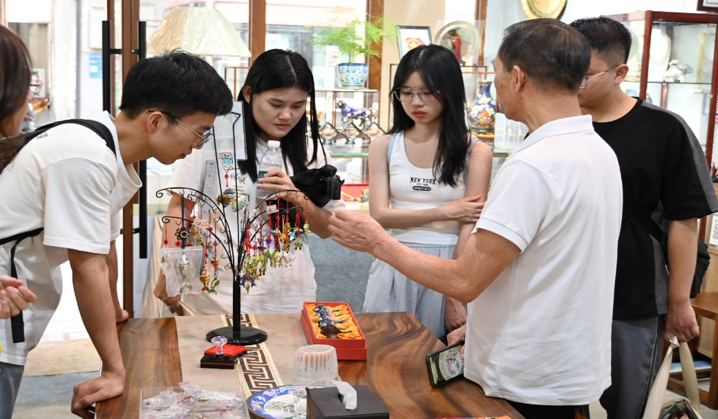 同时,团队成员余艺帆、刘倩茹、卢晨颖、彭嘉欣、刘雅丹、张婉婷、周原源、李思达分工明确、团结协作。他们前往广州市越秀区永庆坊非遗街区开展深入调研,走访了粤剧博物馆、醒狮体验馆、荔湾非遗展示厅,以及涵盖广彩、广绣、骨雕、珐琅等不同领域的非遗工作室,考察非遗文化传播形式的创新与局限。期间,团队成员与非遗传承人、当地居民及游客进行深度访谈,获取了大量一手资料。在数据分析和理论提炼环节,团队成员多次研讨,对项目成果反复打磨,以严谨的态度和探索精神解决了研究过程中的诸多难题,保证数据的严谨性和理论的科学性。