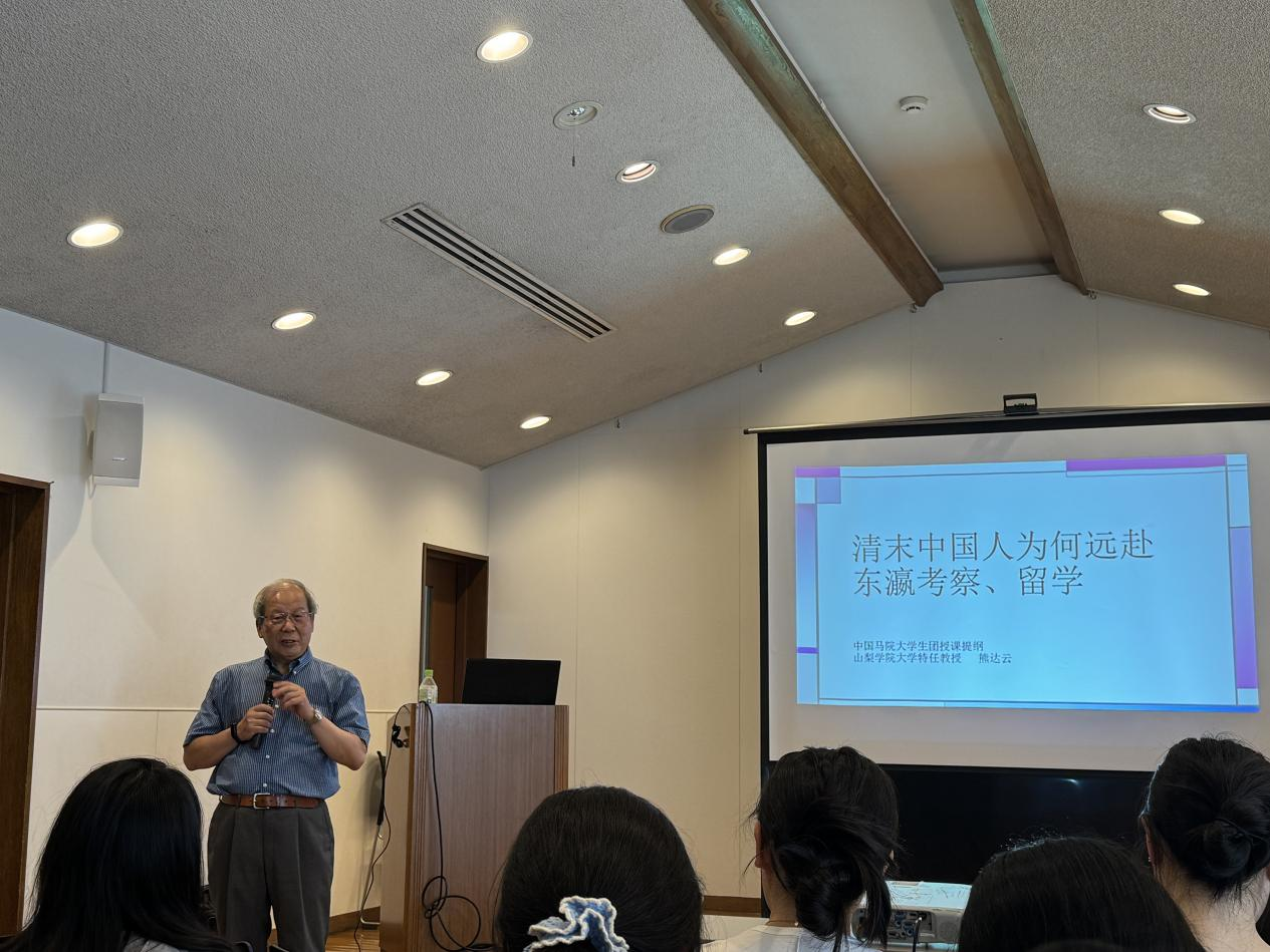 研学期间,团队在早稻田大学系统学习了近代中日交流史专题课程。熊达云教授以《清末中国人为何远赴东瀛考察留学》为主题,剖析了清末知识分子“以日为师”东渡求学背后的救国初心。