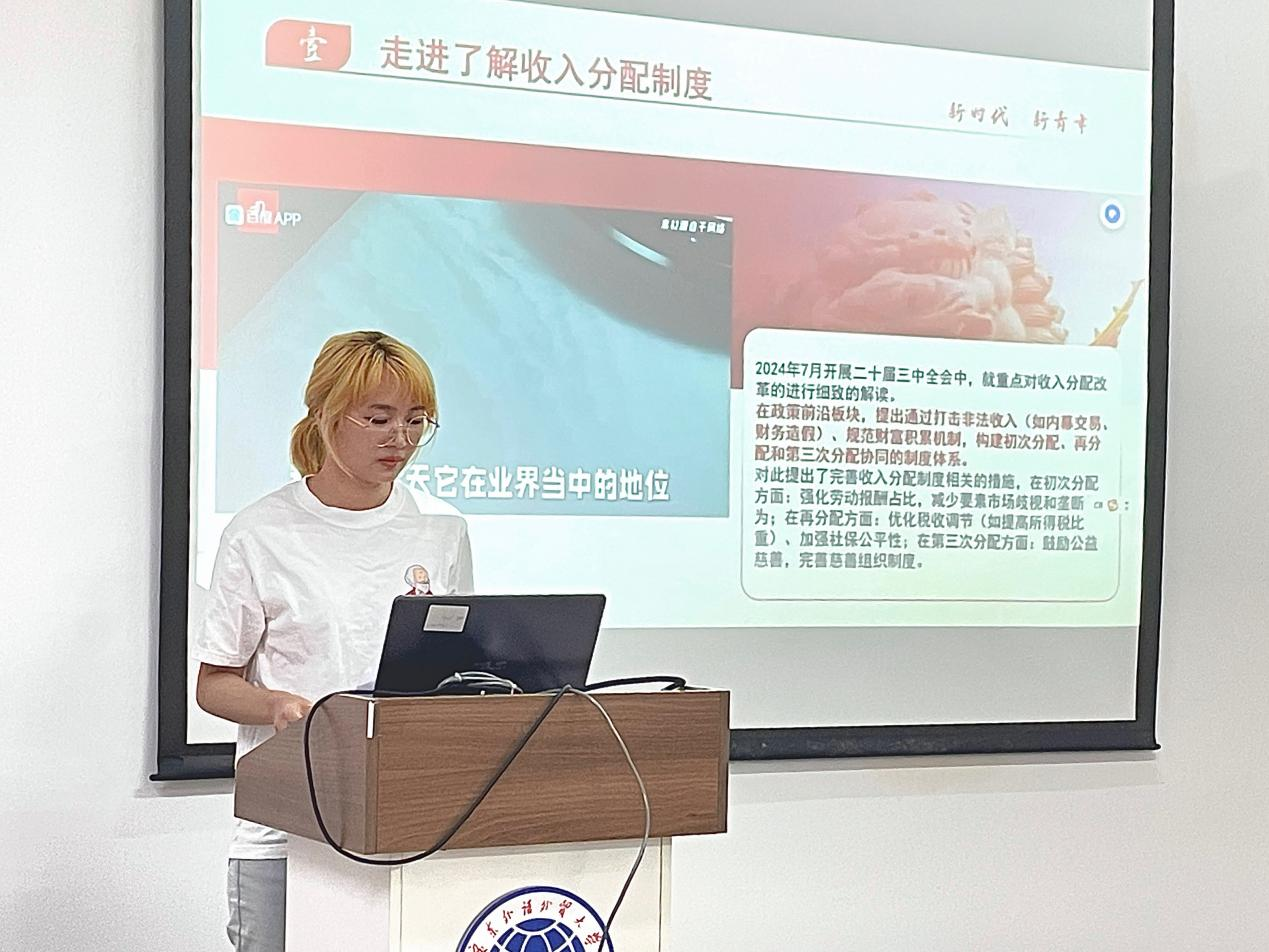 2025年6月5日下午,为深入学习贯彻党的二十届三中全会精神,增强青年学生对共同富裕目标和收入分配制度改革的理解,“云山小马”宣讲团在明德书院开展专题宣讲活动。此次活动由刘荣洁和廖菲担任主讲人,吸引了来自商学院、英语教育学院、金融学院等学院的近50名同学参加。