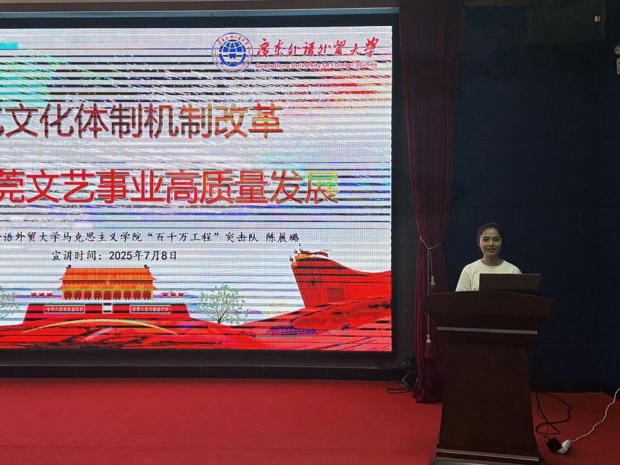 2025年7月8日,广东外语外贸大学马克思主义学院“百千万工程”突击队青年理论宣讲活动在东坑镇文化中心一楼会议大厅顺利开展。东坑镇各村干部、文化宣传工作者以及部分大学生齐聚一堂,共同参与本次宣讲活动。