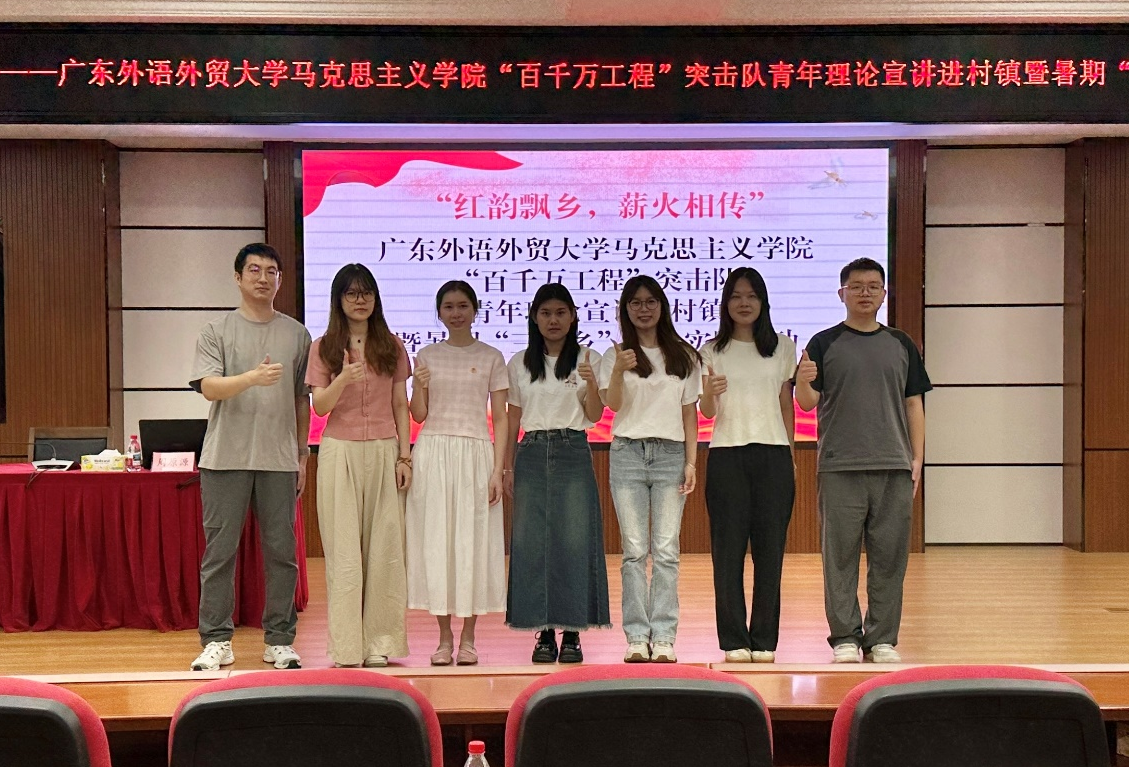 7月10日,广东外语外贸大学马克思主义学院 “百千万工程” 突击队走进东莞市桥头镇政府与应急管理分局,围绕东江纵队历史、民生福祉建设、新质生产力发展三大主题,开展了一场接地气、有温度的基层理论宣讲活动。