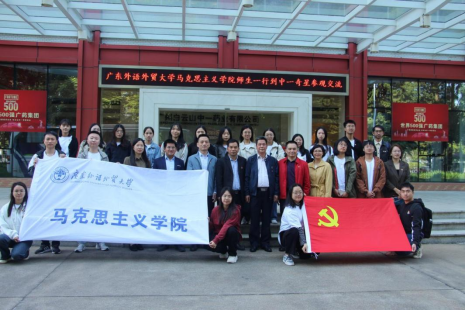 2023年11月21日上午,广东外语外贸大学马克思主义学院党委与广州白云山中一奇星党委在白云山中一奇星营销大楼开展结对共建签约暨“坚定文化自信 坚守魂脉根脉”主题党日活动。马克思主义学院党委书记麦培年、正处级组织员林绍雄、党政办主任龙世邦、研究生党员代表共25人参加活动。广州白云山中一奇星党委副书记、工会主席林启宗,人事运营党支部书记、行政人事中心副总监赖晓明,党建行政文化中心副总监陈悦群,党建文化党支部书记、党委办公室主任周丽冰,党委办公室副主任、团委书记欧婉淳等出席。