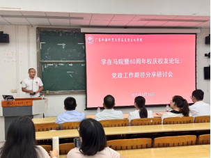 2025年9月16日,广东外语外贸大学马克思主义学院(以下简称“马院”)举办“学在马院暨60周年校庆校友论坛”,邀请四位在不同岗位深耕的优秀校友重返校园,与在校学子分享成长经验、共话职业发展。论坛由学院党政办公室主任、辅导员龙世邦主持,学院党委书记麦培年出席并作总结讲话。