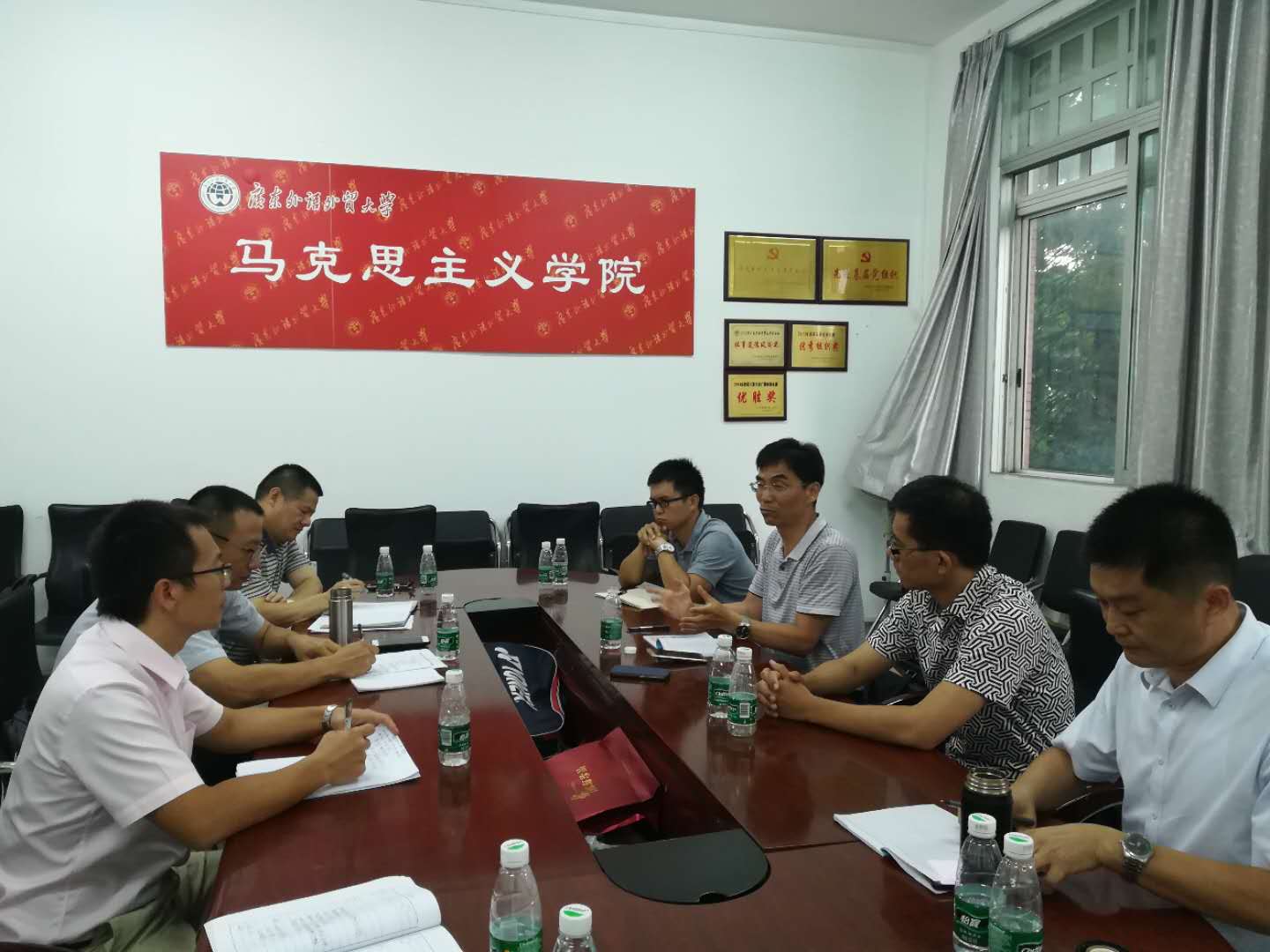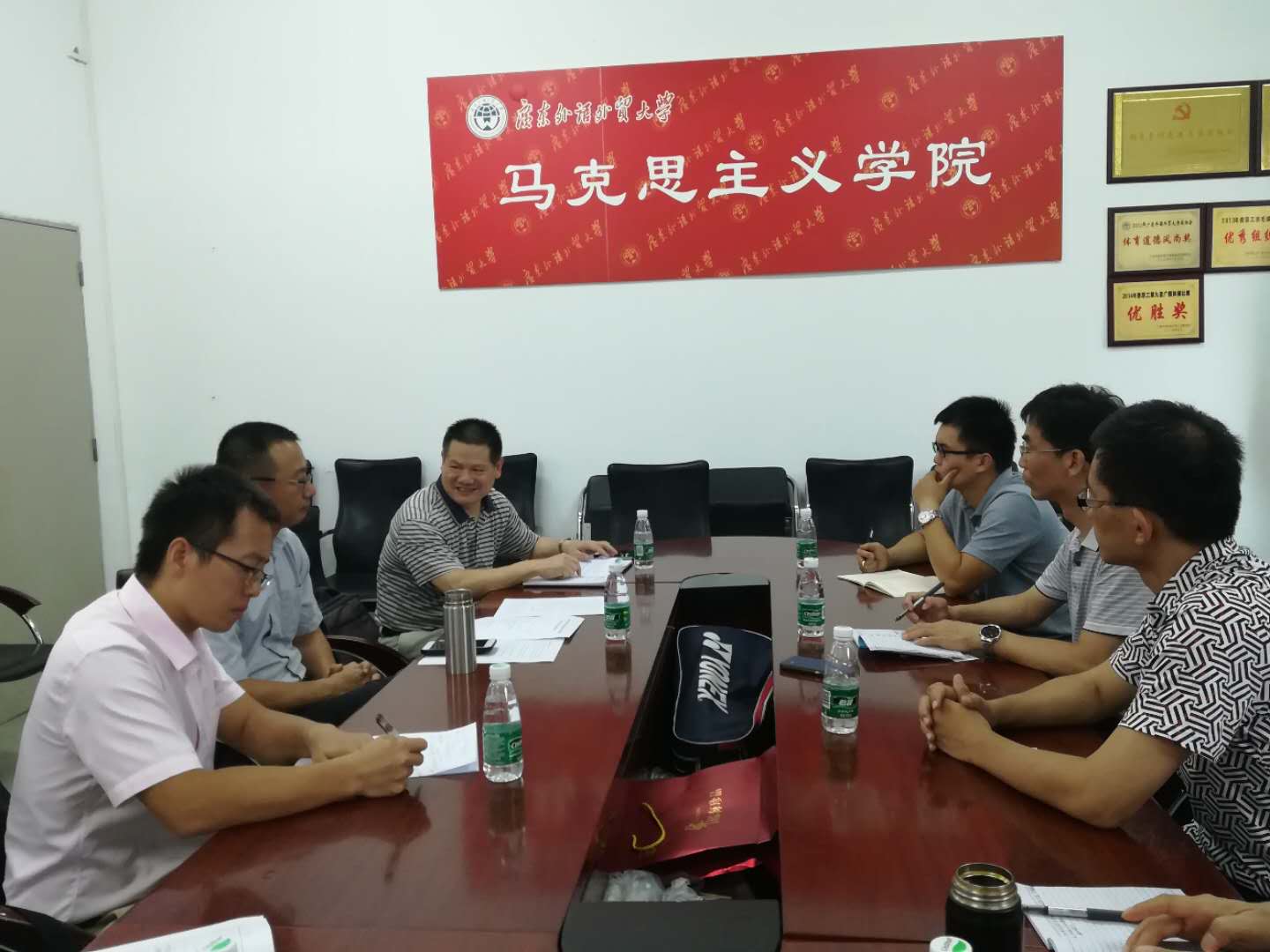 8月22日下午,山东大学马克思主义学院(威海)吴文新院长一行4人来到广东外语外贸大学北校区在四教314办公室就思想政治理论课建设等工作与我校马克思主义学院展开交流学习。