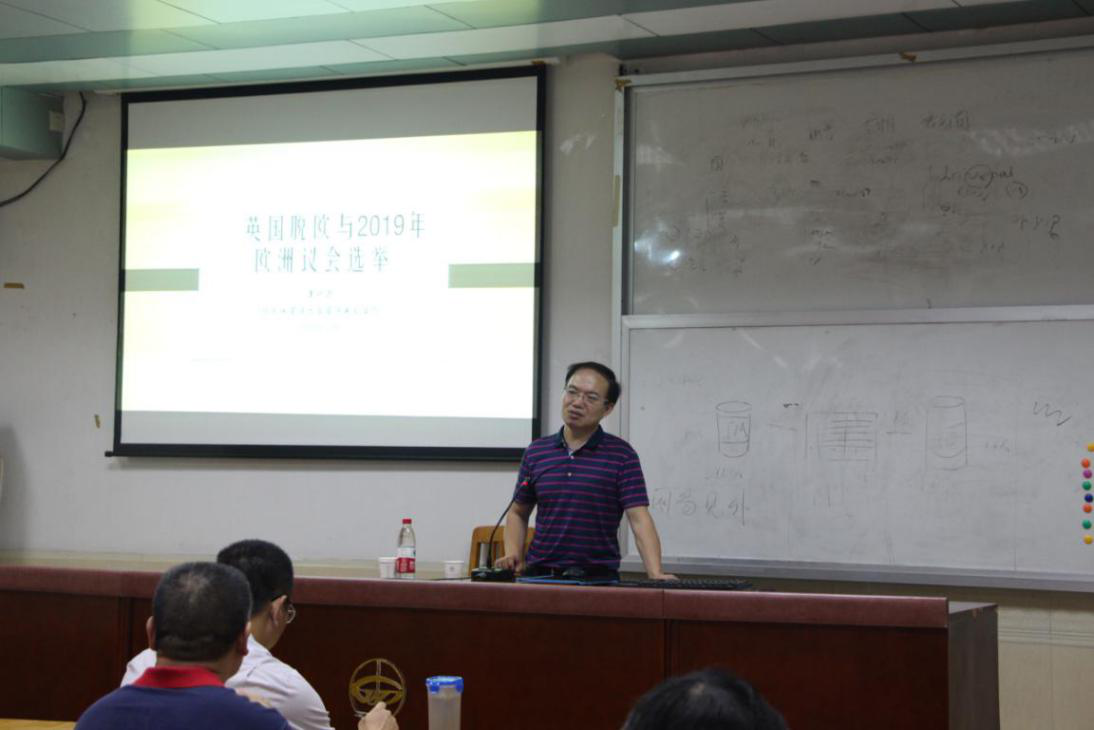 7月8日上午,北京外国语学院国际关系副院长、《国际论坛》副主编王明进教授于北校四教424室开展主题为《英国脱欧与2019年欧洲议会选举》的讲座。本次讲座由马克思主义学院副院长崔艳红教授主持,全院师生参加。