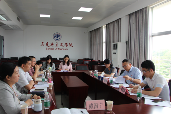 5月13日上午,党史学习教育第十一巡回指导组调研座谈会在南校区教学楼A509会议室召开。校党委常委、党委宣传部、教师工作部部长胡文涛,校纪委委员、机关党委书记黄秀娟,党委宣传部宣传科科长邓海清以及马克思主义学院党总支班子成员、学生党员代表出席了座谈会。