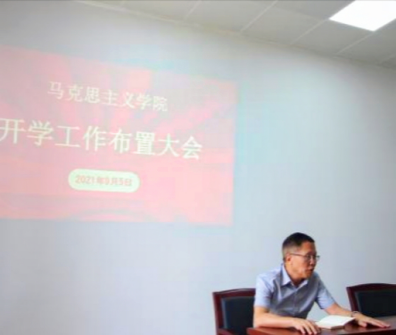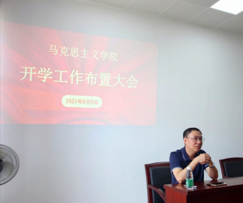 2021年9月5日上午,马克思主义学院在南校区A509召开了开学工作布置大会,会议由麦培年书记主持,全院教师参加,并邀请刘海春副校长莅临指导。
