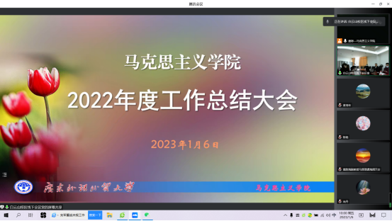 学院副院长朱海龙对2022年学院教学工作进行了简要总结并提出了2023年教学工作的主要目标。2022年学院通过深化大思政课程改革,提高思政课程育人实效;加大专职思政教师培训力度,加强教师政治素质和业务水平增强与提升;全面强化教学过程管理,持续提升教学质量。在未来的工作中,学院将继续加强教学团队建设;以评促建,积极做好本科教育教学工作审核评估;进一步完善各项教学规章制度,做好学校学分制改革的各项应对工作,规范考试管理工作;继续强化国际化特色思政课建设。