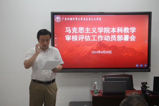 4月20日下午,马克思主义学院于大学城校区教学楼A509召开了2023年本科教学审核评估工作动员大会,会议由学院副院长朱海龙主持,学院全体教职工参加了此次会议。