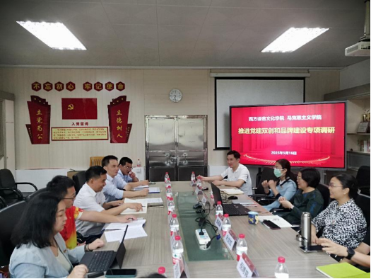 在调研活动上,王秀民以“党委强化党建引领,推动学院事业高质量发展”为题,全面介绍了西语学院发挥政治功能和组织功能、推进党建“双创”工作的主要经验与做法,敖湘辉介绍了西语学院党建工作的特色与亮点,叶剑如介绍了建设样板党支部方面的相关做法和工作体会。