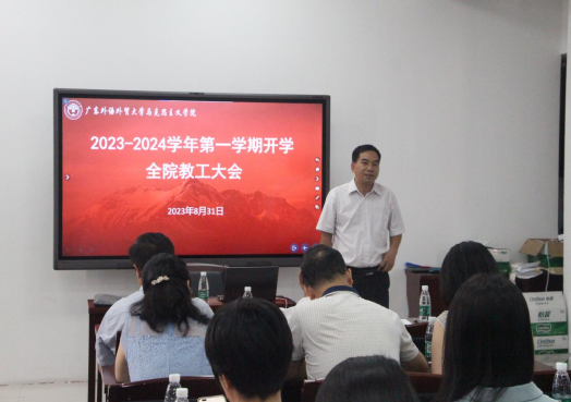 2023年8月31日下午,马克思主义学院在大学城校区A座509会议室召开2023-2024学年度第一学期开学全院教工大会,全体教职工参加,正处级组织员林绍雄主持会议。