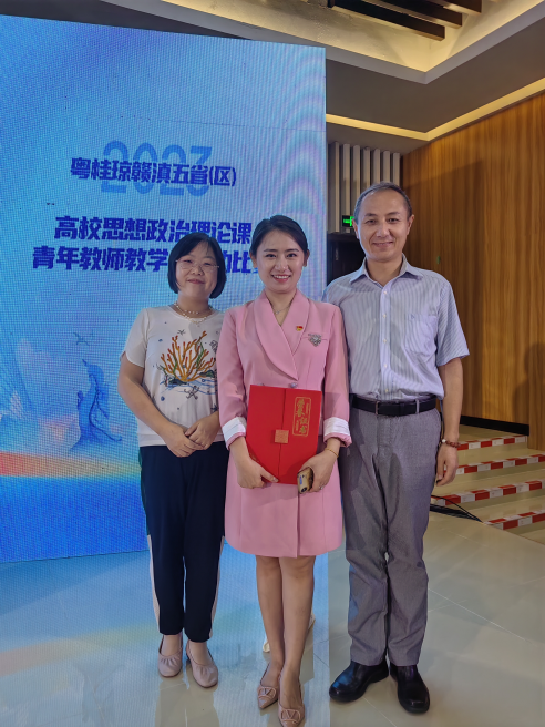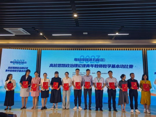 本次粤桂琼赣滇五省(区)高校思想政治理论课青年教师教学基本功比赛由五省联合主办、海南省承办,是五省高校思想政治理论课教师展示风采,切磋教学共促成长的重要平台。马克思主义学院党委对此次五省大赛高度重视,选拔大赛经验丰富的罗佳教授悉心指导、全程跟进,同时聘请广东省教学名师不间断指导,提供多方面保障,全程支持大赛。刘茹楠教师以卓越的教学素养、优秀的教学设计、专业的现场答辩获得评委的一致认可,最终以优异的成绩荣获2023年度粤桂琼赣滇五省(区)高校思想政治理论课青年教师教学基本功比赛二等奖。