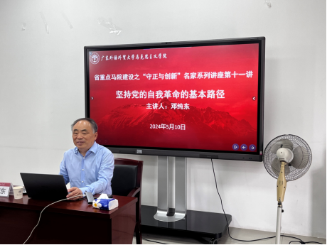 5月10日下午,马克思主义学院“守正与创新”名家系列讲座第十一讲在A座教学楼509顺利开讲,第十三届全国政协委员,全国政协社会和法制委员会委员,中国政策科学研究会副会长,中国社会科学院马克思主义研究院原院长,党委书记邓纯东教授主讲,广外马克思主义学院党委书记麦培年主持,学院党政领导班子成员、教师代表、研究生共计56人参与讲座。
