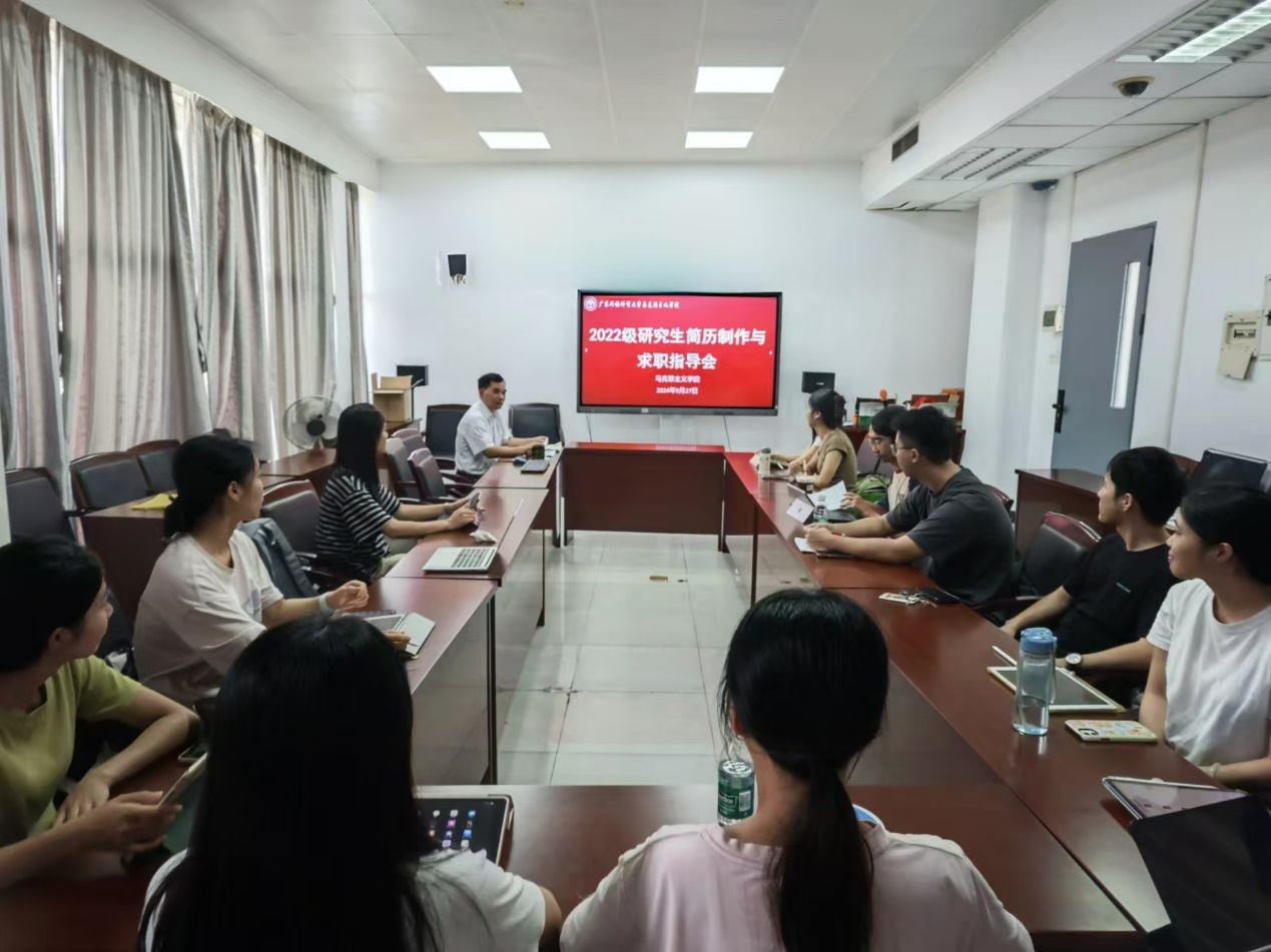 为推动学院2025届硕士研究生毕业生在就业形势整体下行情况下实现高质量就业,提升简历制作与求职能力,9月27日,马克思主义学院在学院会议室成功举办了一场别开生面的简历制作与求职指导会,邀请学院党委书记麦培年指导,2025届硕士研究生毕业生全体参与。