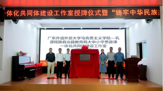 与会领导共同为广东外语外贸大学马克思主义学院—乳源瑶族自治县教育局大中小学思政课一体化共同体建设工作室授牌。