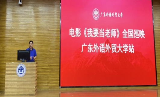 2024年4月16日,全国首部思政课教师题材轻喜剧院线电影故事片《我要当老师》广东外语外贸大学点映专场在白云山校区图书馆报告厅举行。学校党委宣传部副部长费俊慧,马克思主义学院党政领导班子成员、全体研究生,学校思政课教师和本科生学生的代表共同观影。