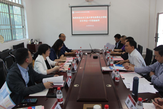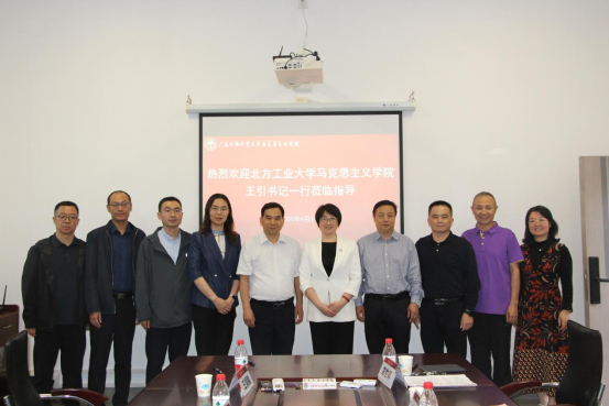 4月14日下午,北方工业大学马克思主义学院党委书记王引、党委组织部副部长王磊、党委副书记唐钦、副院长王润稼、概论教研室主任朱建平一行到我院开展工作调研交流。调研座谈会由广东外语外贸大学马克思主义学院党委书记麦培年主持,学院党委副书记、院长毛国民,党委组织员(五级职员)林绍雄,副院长曾荣、朱海龙、雷艳芝,习近平新时代中国特色社会主义思想概论教学部主任傅薇,党政办公室主任龙世邦等参与座谈交流。