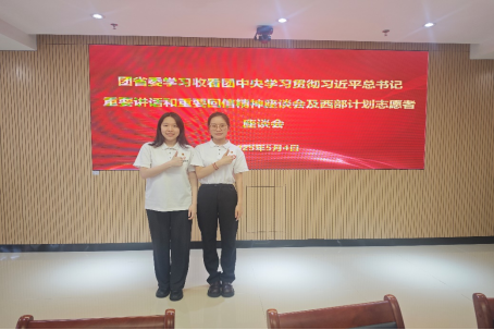 5月4日上午,我院2022级研究生甘秋丹作为特邀西部计划志愿者青年代表参加团省委组织的学习收看团中央学习贯彻习近平总书记给新疆克孜勒苏柯尔克孜自治州阿图什市哈拉峻乡谢依特小学戍边支教西部计划志愿者服务队队员重要回信精神电视电话会议暨西部计划志愿者座谈会。