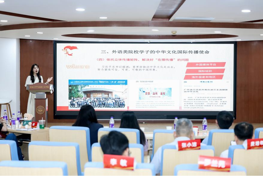 马克思主义学院“云山小马”宣讲团队长丘唐唐以“学思践悟习近平文化思想:外语类院校学子的中华文化国际传播使命”为主题进行宣讲,以习近平总书记关于国际传播工作的重要论述为引领,共同探讨外语类院校及学子在这场伟大征程中肩负的独特使命与时代担当,得到评委老师及与会师生的好评,展现了广外马院研究生学子的风采。丘唐唐讲到,在当前国际格局下,外语类院校学子更应当以其开放包容的胸怀、扎实深厚的理论功底和语言优势,讲好中国故事、传播好中国声音,在世界的舞台上,自信地讲述真实、立体、全面的中国故事,为中华文化国际传播贡献力量。