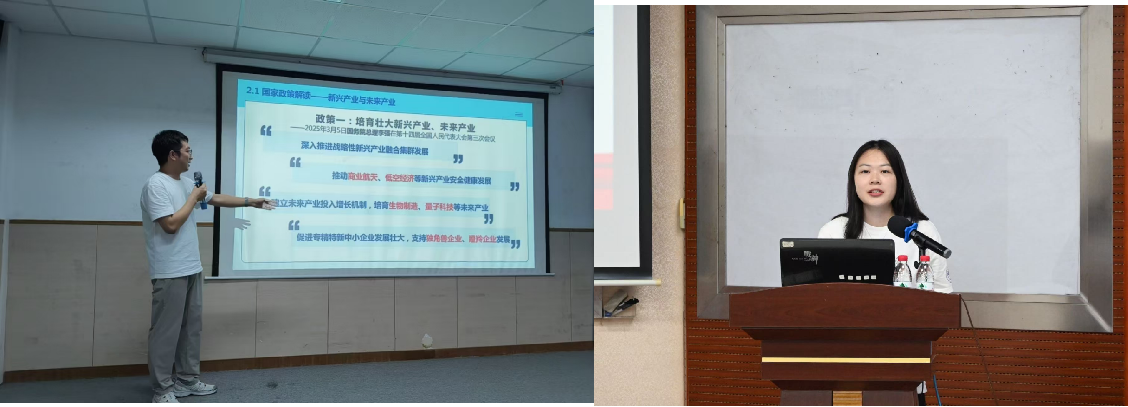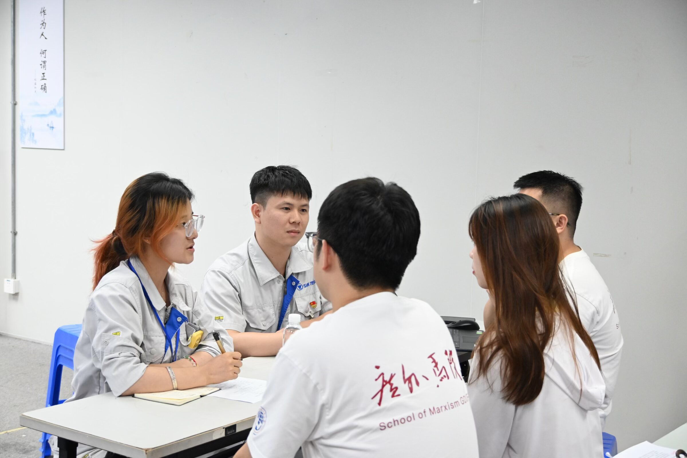 7月7日晚,突击队前往技研新阳党支部开展宣讲,朱勇先同学以“新质生产力”为关键词,通过“概念图解+企业案例”的方式,深入浅出地阐释这一重大理论创新如何赋能高质量发展。欧阳晶同学则聚焦东莞智能制造转型,用“机器换人”“5G+工业互联网”等典型案例,描绘出传统制造业的突围路径。
