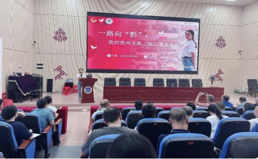 8月29日,为落实学院“双百”工作、支持广外乳源实验学校2025-2026学年校本培训,我院研究生甘秋丹同学受邀为该校全体教师作了题为《一路向“黔”,我的贵州支教之旅与教育实践》的专题分享。本次分享旨在通过甘秋丹分享在贵州民族地区的亲身支教经历,为广外乳源实验学校教师们如何做好少数民族地区中学生班级管理、思政课教学提供参考与启发。