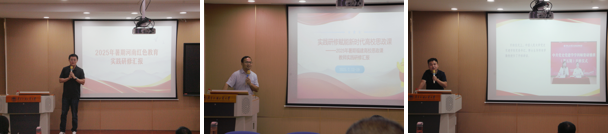 工作布置之前,教师代表洪汛、周智武、谢铭威依次就赴福建师大、河南师大暑期研修的成果和参加中国人民大学党史党建理论研修班的学习收获等进行了汇报交流。