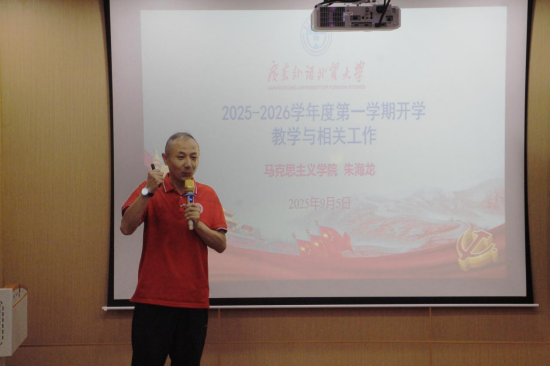 副院长、纪检委员朱海龙从新学期上课安排、课程调整、试卷资料归档、教学评价和纪律作风建设等方面布置了新学期有关工作,鼓励学院教师积极参加教学教研类比赛、申报教学成果及教改项目,同时就《走在前列的广东实践》课程教学安排、特色线上课程录制等工作进行工作布置。