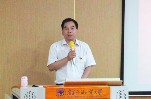 典礼在庄严的国歌声中拉开序幕。学院党委书记麦培年首先代表学院向63位新入学的同学们致以诚挚的祝贺和热烈的欢迎。他结合纪念中国人民抗日战争暨世界反法西斯战争胜利80周年和广外建校60周年两个重要时间节点,强调坚持党的领导和马克思主义中国化时代化是中华民族伟大复兴的根本保障,鼓励同学们将个人理想融入民族复兴征程。他提出三点寄语:第一,以“感恩之心”锚定人生方向。第二,以“青春向党”筑牢信仰根基。第三,以“过硬本领”担当时代使命。他希望全体2025级新生以“马克思主义真理之光”照亮前行之路,以“中华优秀传统文化之根”厚植思想沃土,以“新时代文明实践之约”践行青春誓言。