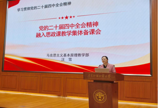 广东外语外贸大学刘祥和副部长在此次备课会提出三点建议和希望,一是提高政治站位,深刻认识党的二十届四中全会的重大意义;二是谨记责任担当,以高质量思政课提升铸魂育人实效;三是创新教育教学方法,回答好“怎么进”“如何教”的问题。他指出:我们要积极构建广东外语外贸大学特色的“大思政课”育人格局,将思政课教学与其他课程教学、校园文化建设、社会实践等紧密结合起来,形成全方位、多层次的“国际化特色鲜明”的育人体系,实现知识传授与价值引领的有机统一,实现润物细无声的育人效果。