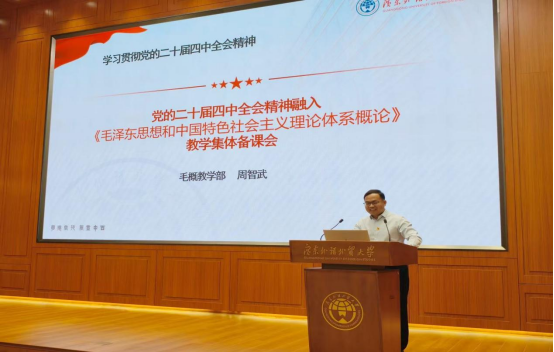 我校毛泽东思想和中国特色社会主义理论体系概论教学部主任周智武分享了党的二十届四中全会精神融入《毛泽东思想和中国特色社会主义理论体系概论》的教学的必要性、教学的原则、教学的路径(切入点、关键点、着眼点)。