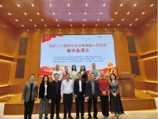 2025年12月1日,在白云山校区国际会议厅通过线上线下相结合的方式,我校马克思主义学院和结对共建的7所省内高校马克思主义学院联合举办党的二十届四中全会精神融入思政课集体备课会。