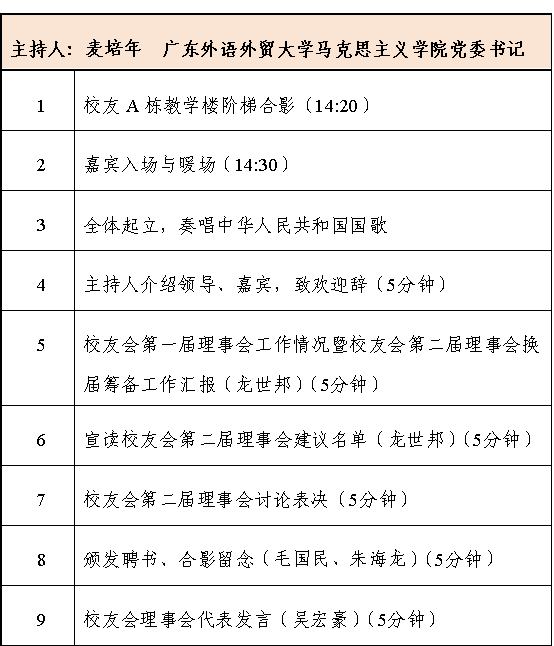 一、马克思主义学院校友会第二届理事会换届大会会议议程