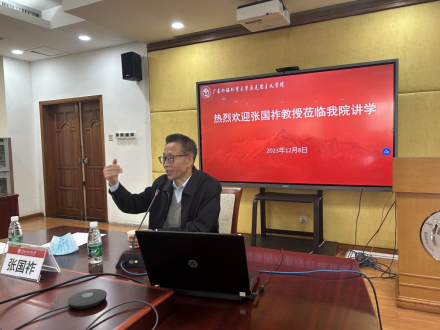 2023年12月8日,马克思主义学院在大学城校区行政楼第一会议室举行“守正与创新”名家系列讲座第七讲。中央马克思主义理论研究和建设工程首席专家、国家教材委员会(马工程)专家委员会专家、教育部全国高校思想政治课教学指导委员会咨询委员会委员、国家社会科学基金学科规划评审组专家、湖南大学马克思主义学院院长张国祚教授受邀做《文化自信的六个“更”》的主题报告。学院党政领导班子、教师代表以及全体研究生参加本次讲座。讲座由学院党委书记麦培年同志主持。