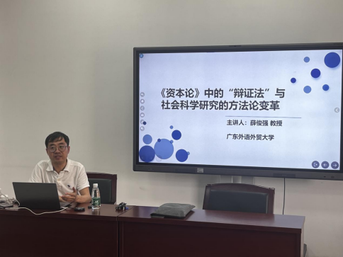 2024年4月18日下午,青年沙龙第十七讲在广外大学城校区教学楼A509会议室顺利举办,薛俊强教授以“《资本论》中的‘辩证法’与社会科学研究的方法论变革”为主题,在场师生围绕这一学术议题展开充分讨论,在互动交流中启发了新的思维视角。