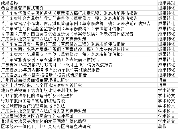 | 党的十八大以来广东全面依法治省实践研究 | 项目 | 广东省社科规划办 |